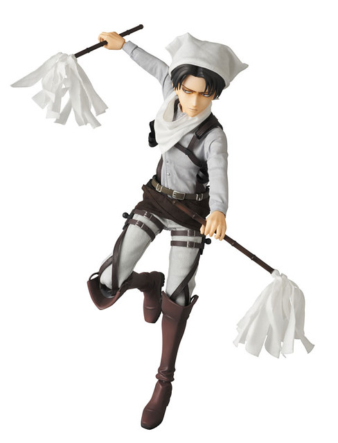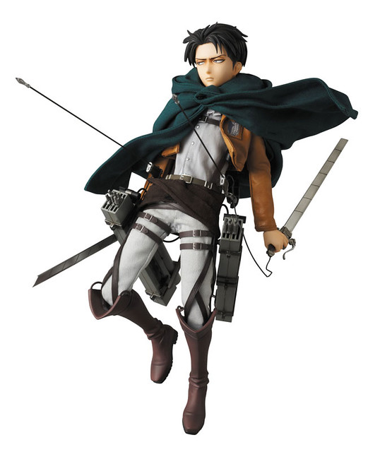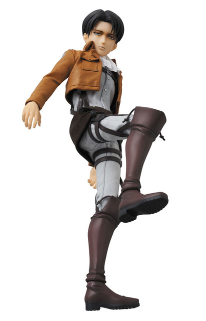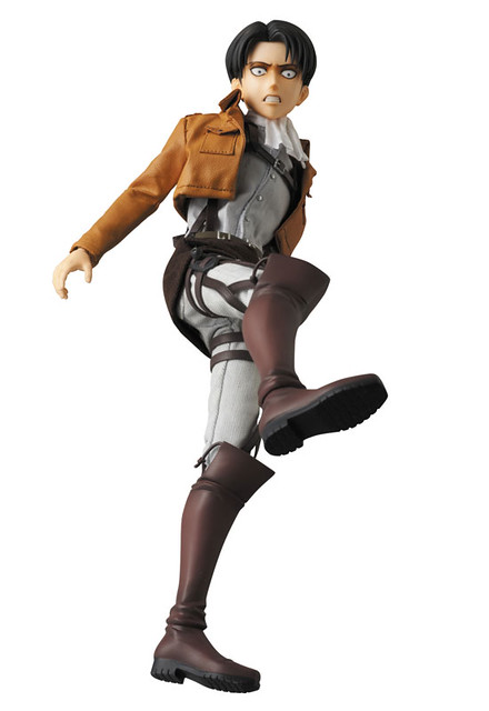 在漫畫「進擊的巨人」作品當中擔任調查兵團特別作戰小組班長的里維リヴァイ,雖然個頭不高,但被稱為擁有能抵得過一整個旅團的極高戰力,曾經一瞬間就打倒了兩個巨人,此外也同時也身兼調查兵團的兵長,以及主角艾連(エレン)的監護人,這次將由日Medicom玩具公司以RAH系列來呈現リアルアクションヒーローズ No.662 RAH リヴァイ,商品RAH系列編號662的進擊的巨人 里維 的尺寸高約30公分,附有可以替換表情パーツ3種類、前髪パーツ2種類、調査兵団のマント立体機動装置、刃、可以替換各種手首配件和可動式フィギュアスタンド等等配件,並且有附初回生産限定的頭巾、バンダナ和はたき2本等等豐富配件,預計在2014年12月發行,售價約25,488元日幣,提供給喜歡進擊的巨人的玩具人可以參考一下。
