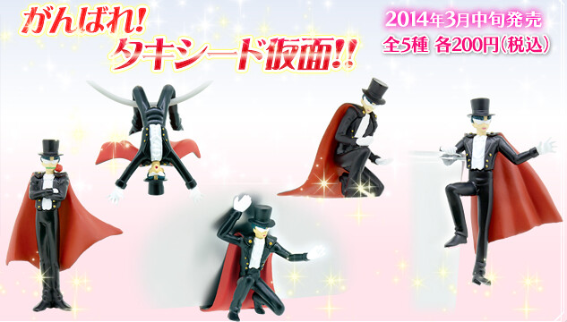 「美少女戰士」登場的角色“燕尾服蒙面俠”(タキシード仮面 / 晚禮服假面)將以轉蛋的形式登場,推出『加油吧!燕尾服蒙面俠!~』(がんばれ!タキシード仮面!!)