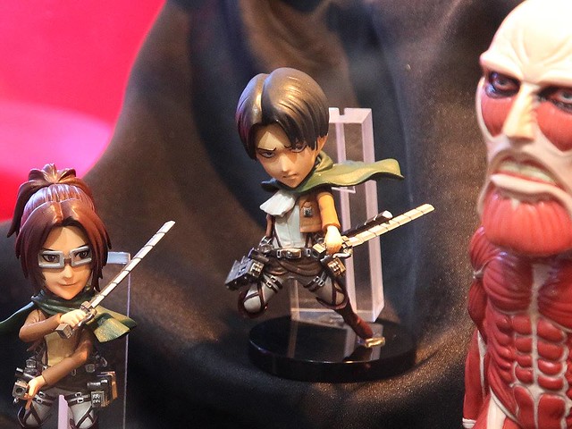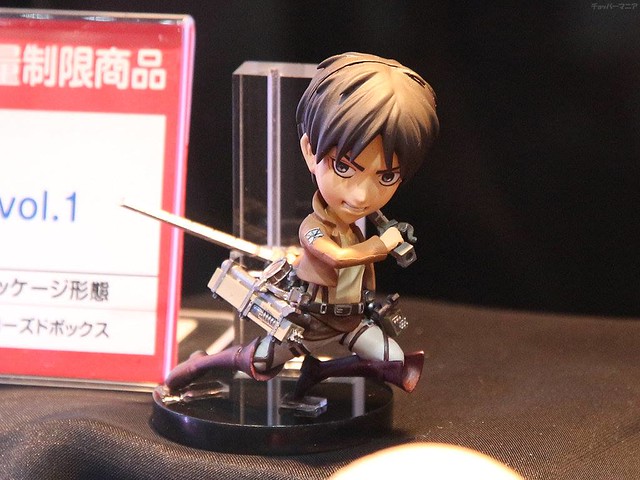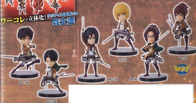 在近日Japan Amusement Expo 2014展覽上BANDAI萬代玩具公司的景品Banpresto(俗稱眼鏡社)事業部都會公開今年預計推出的相關玩具商品,公佈了預計在2014年推出人氣動畫進擊的巨人 的WCF系列,預計收錄了艾倫、卡米莎、 阿爾敏、里維和超大型巨人等等進擊的巨人裡面出現的主要相關角色人物,目前是以上色完成的彩色樣品。