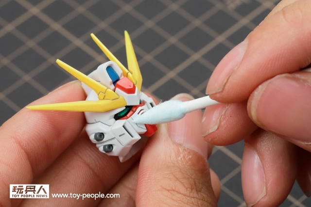 ▼ 延續A篇結尾,我們將墨線擦拭完成,全裝備型製作攻擊鋼彈的頭部看起來是不是更佳立體呢?!:D