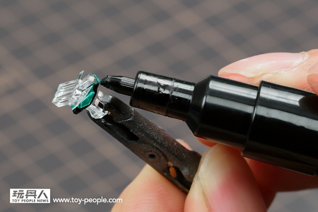 ▼ 靜置待乾約三分鐘左右,就可以另外使用黑色鋼彈麥克筆,為眼部監視器周圍描黑框。