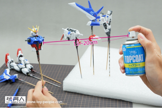 ▼ 首先再噴保護漆之前,需要留意手握噴罐的方式,以及噴罐與模型之間要保持15~20cm