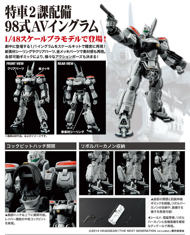 這一款作品出自《機動警察》在今年2014年4月所公開的寫實版作品《THE NEXT GENERATION -パトレイバー-》,忠實地重現了原作中1:1英格蘭姆(イングラム)的造型,使用了矽膠、透明零件以及電鍍零件來高度還原。
