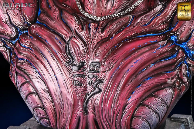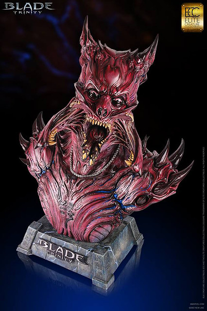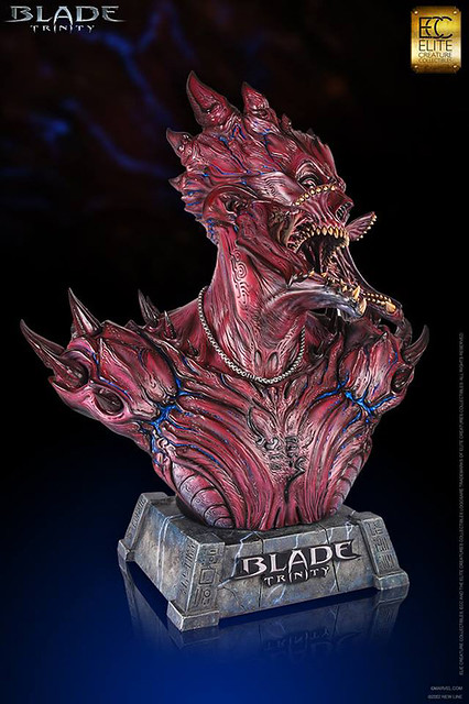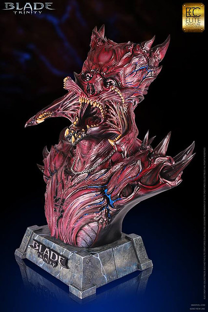 由知名華裔特效化妝師王孫杰(Steve Wang)所領軍的ECC小組(Elite Creature Collectibles),近期公佈將推出吸血鬼始祖Drake的現形胸像。吸血鬼始祖Drake出自電影刀鋒戰士3(Blade 3),是擁有最強血統、高智慧且不怕太陽的最強吸血鬼,但也是消滅吸血鬼的終極關鍵。本作品就是Drake現出原形拿出真本事與Blade決戰的造型,突出的怪物造型能夠量產胸像化,絕對是雕像迷的一大福音。本商品尺寸高約32X寬30X深21英吋,售價為999美金,目前各大玩具網站已經展開預售,預計2014年4月推出,提供給大家參考喔!