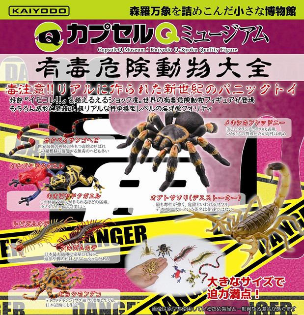 海洋堂大人氣的膠囊Q博物館系列所涵蓋主題真是森羅萬象,預計6月將推出新企畫「有毒危險動物大全」,收錄了蠍子、蜘蛛、蜈蚣、毒箭蛙、珊瑚蛇與藍圈章魚共8款,栩栩如生非常有威脅感,絕對不適合小朋友蒐藏啊!每蛋約300日圓,提供給大家參考!