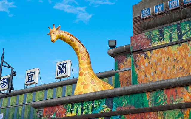 遠遠望去,充滿綠樹的站前廣場,像是《星空》繪本中,男孩女孩漫步穿越的幽靜森林,也讓宜蘭火車站看起來像是一座隱身在森林裡的火車站;由此想像延伸,以綠意盎然的圖像包覆車站外牆,為人潮熙來攘往的火車站增添活潑朝氣,同時請來長頸鹿擔任守門員,迎接每天經過的旅客。