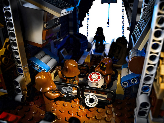 而這群爪哇族(Jawas)在充滿沙漠塔土因星上販賣機器人所搭乘的載具就是「沙漠爬行者」(Sandcrawler),這款巨大的載具真的是功能強大啊,不過這個經典造型的載具,卻很少被立體化。過去,樂高公司(LEGO)曾經在2005 年推出了編號10144 的「沙漠爬行者」,但似乎許多熱愛星際大戰的樂高人對這次的作品都不甚滿意,所以之後在LEGO 知名的投稿平台網站LEGO CUUSOO 上又再次出現了這款經典的載具作品,期待有一天樂高公司能夠將這款作品更精細化後推出上市。