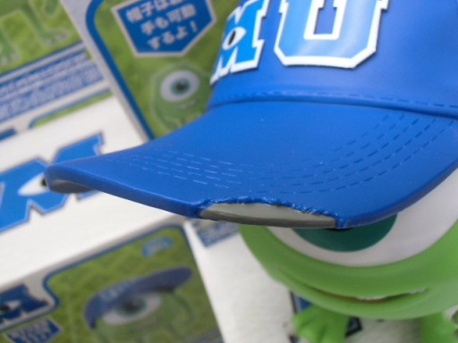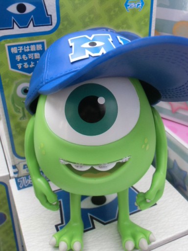 這一款大型軟膠玩偶,就是出自片頭時令人印象強烈的『大眼仔』麥可‧沃佐斯基的兒時造型,並搭配了從怪物公司員工手中獲得的怪物公司棒球帽。除了極高完成度的造型、四肢可動之外,帽子可自由穿脫,並且利用精緻的造型功力重現了舊帽子破損的造型,以及『大眼仔』的牙套!~