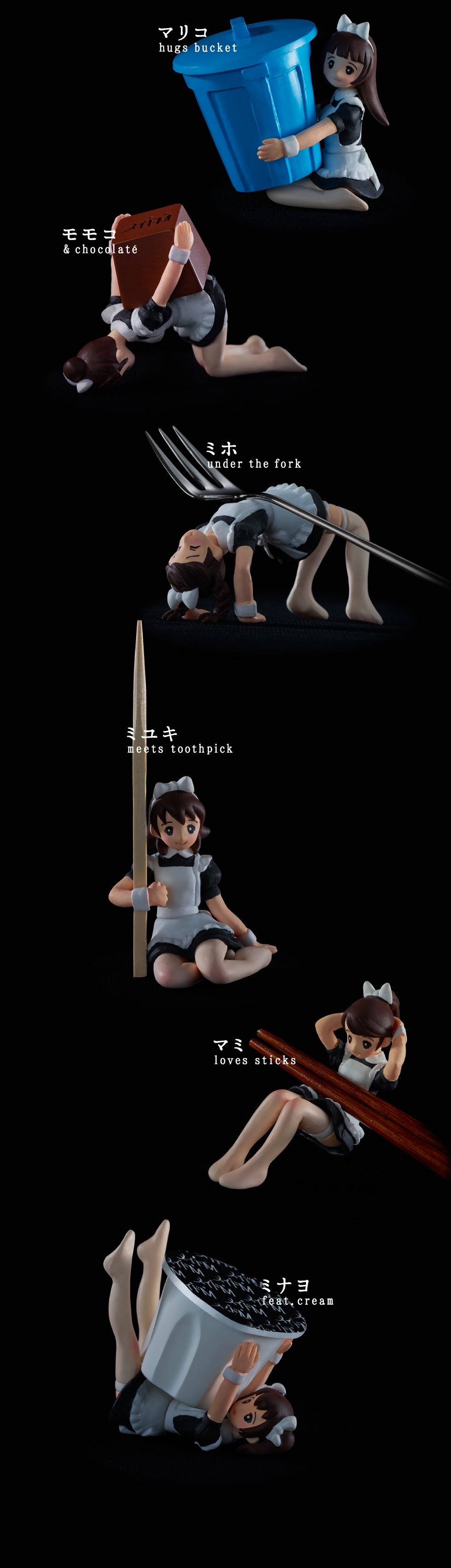 與TAKARA TOMMY合作的謎之創意團體熊貓之穴(パンダの穴),以極具創意的搞笑形式推出了多款大受歡迎的玩具商品,這次預計在5月發行メイドM 女僕M餐具座(暫時翻譯)轉蛋,以縮小尺寸的迷你女僕呈現,有各式各姿勢的女僕可以用來當餐具架、拿著牙籤、拿著奶球或是用腹部支撐筷子等等約有六種類的實用功能,相信放在餐桌上放置的模樣應該十分微妙,每款單轉約200元日幣,喜歡熊貓之穴的轉蛋商品的玩具人可以參考一下歐!