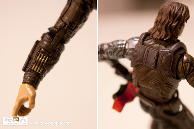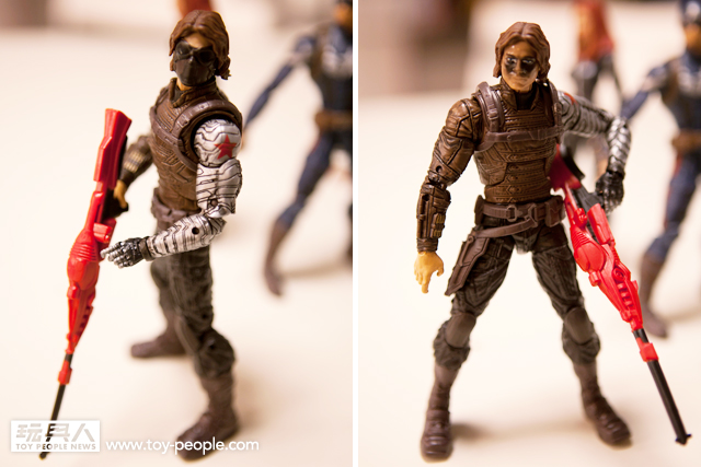 ▼ 酷寒戰士的金屬手臂所表現出來的強悍質感可說是一大亮點,再搭配深紅色搶眼的大槍與灰暗服裝的襯托真的是相當霸氣啊!