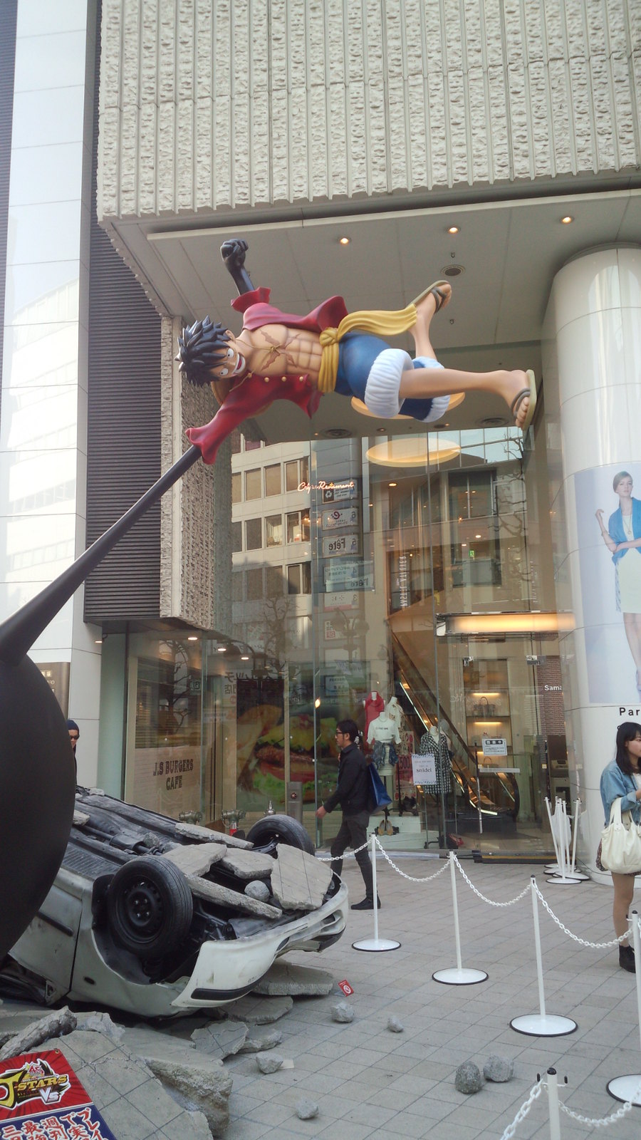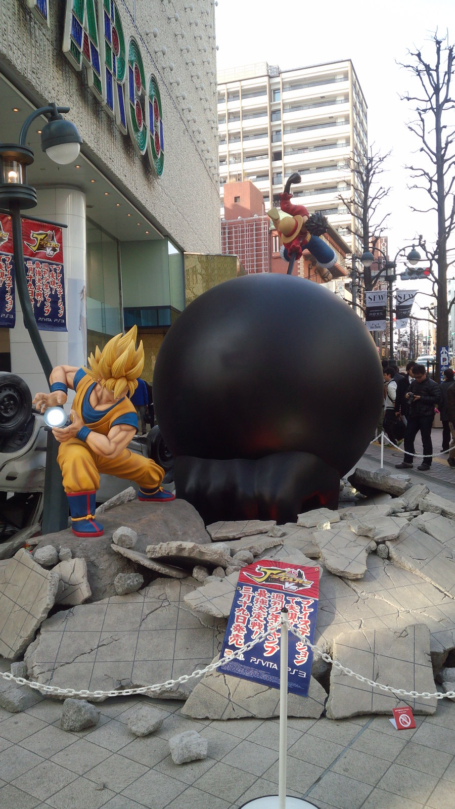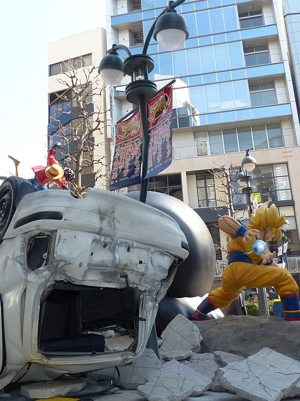 這次為了宣傳《J群星勝利對決》,NAMCO BANDAI Games 在日本東京澀谷的Parco 百貨門口設置了「七龍珠」主角“孫悟空” V.S 「海賊王」主角“魯夫”,極具魄力與衝擊性的1:1 雕像,魯夫“武裝色橡膠象槍”、擊爆的地磚、會發光的龜派氣功以及翻倒的汽車,都相當的精彩! 這一個宣傳雕像將在3月17日~3月22日間限時展出,這段期間有幸前往日本的玩具人,請千萬別錯過啦!~