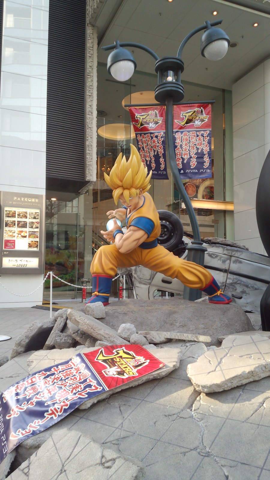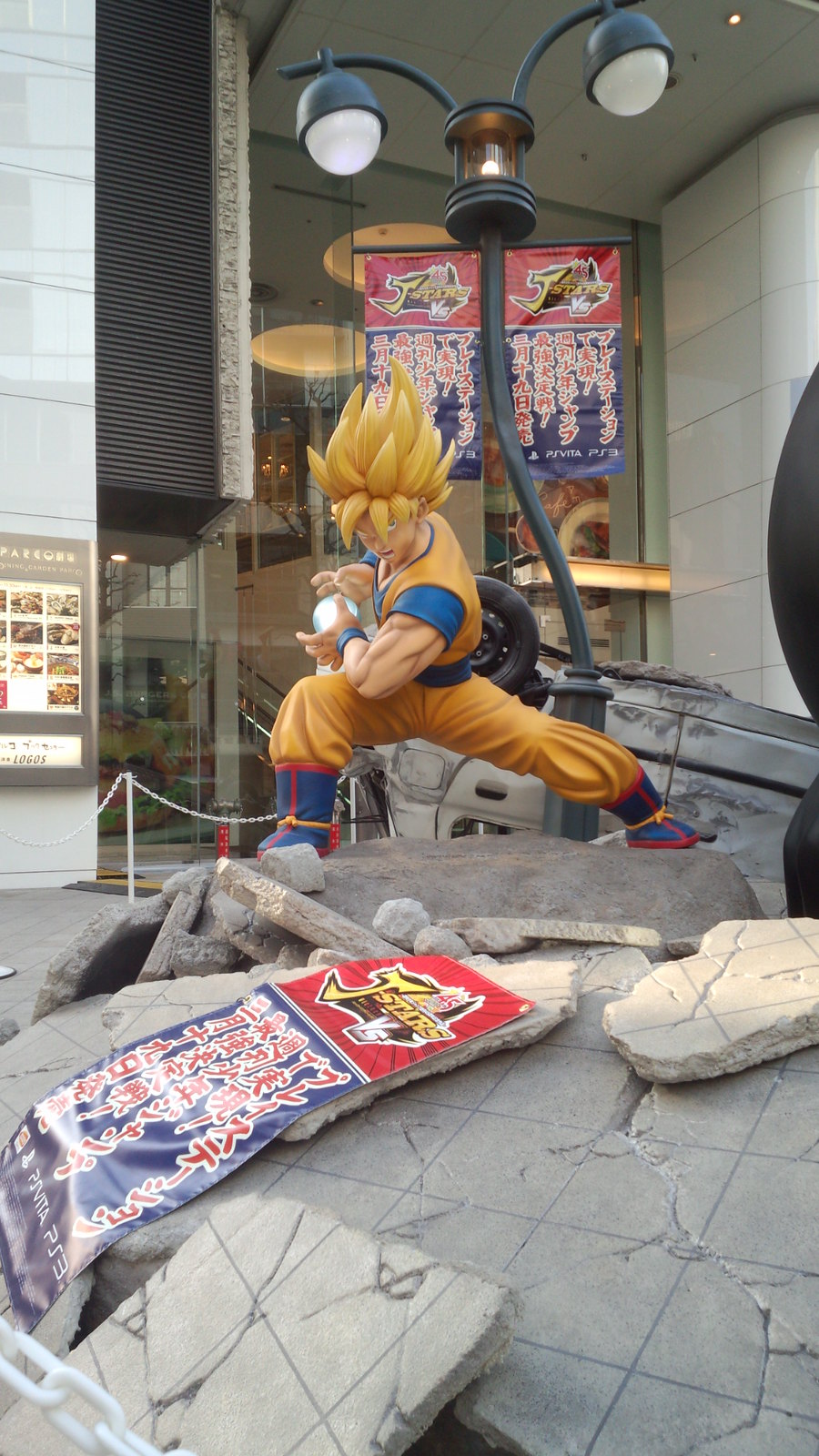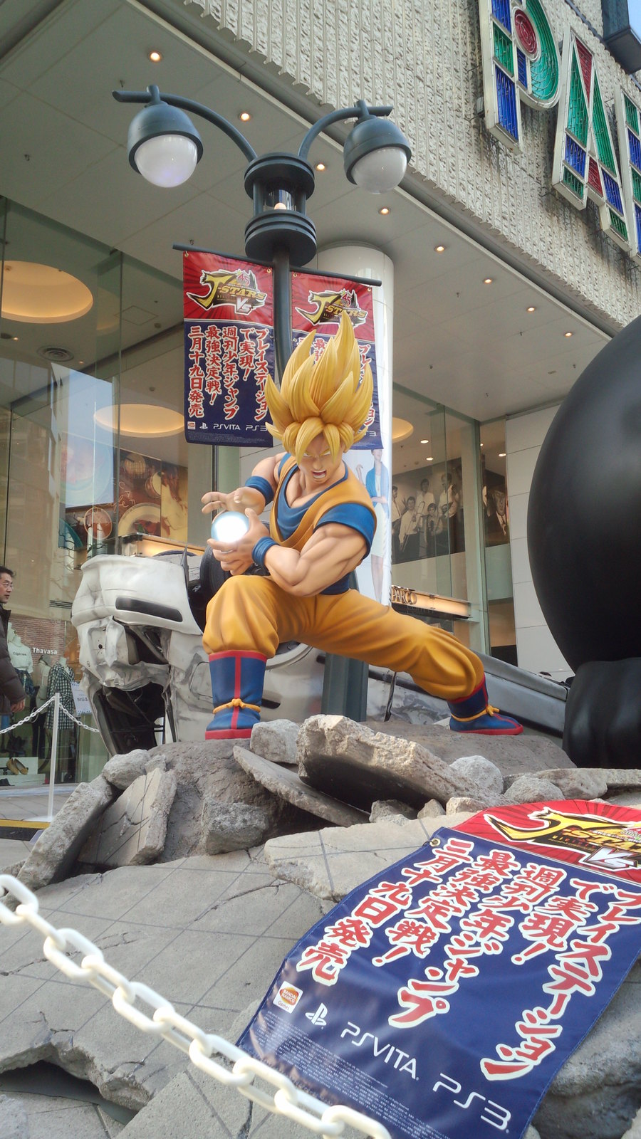 為了宣傳即將於3月19日在日本發售的PS3 / PS Vita 對戰動作遊戲《J群星勝利對決》(ジェイスターズ ビクトリーバーサス),製作公司NAMCO BANDAI Games 在日本東京澀谷的Parco 百貨門口,設置了極具魄力的1:1 雕像來宣傳。