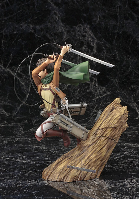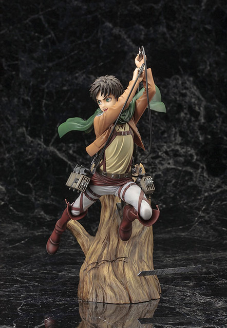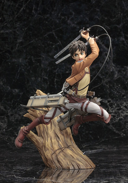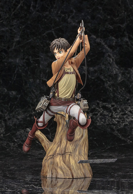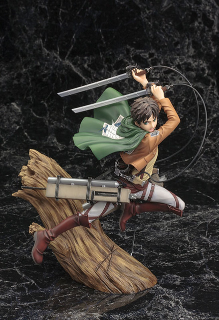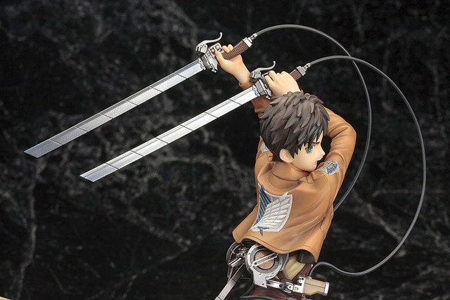 日壽屋玩具公司的ARTFX J系列預計2014年8月發行進撃の巨人 エレン・イェーガー 1/8 完成品フィギュア,以8分之一比例呈現的漫畫進撃的巨人當中的主要角色人物艾連‧葉卡,這次的上色完成品完整呈現艾連雙手拿著有超硬質刃(超硬質ブレード)一對和原作中的經典道具「立体機動装置」也細緻的製作出來,背上披風可以卸下來,展現不一樣的造型,尺寸高約有26公分。