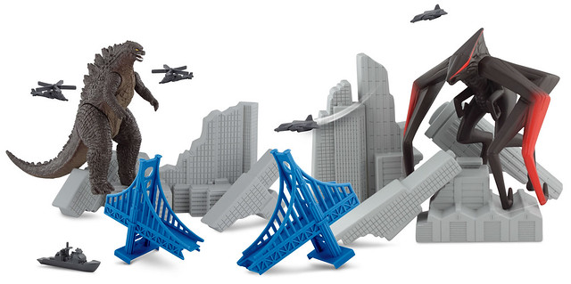重現經典的哥吉拉破壞城市遊玩組“Destruction Pack”,並且包含了這次電影版所登場,哥吉拉的神秘敵人“巨型不明生物”(M.U.T.O. Massive Unidentified Target Organism)。組合搭配了3個被摧毀的建築、1座毀壞的橋樑以及5架軍方載具。