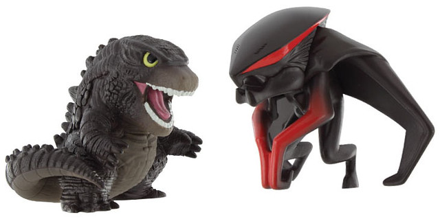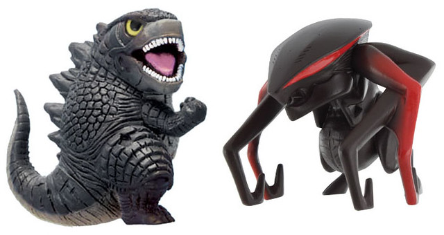 Q版玩偶雙人包,將兩支可怕的巨獸轉成可愛的Q版造型,一共有兩種組合,每款皆有一隻哥吉拉 與 “巨型不明生物”(M.U.T.O.)