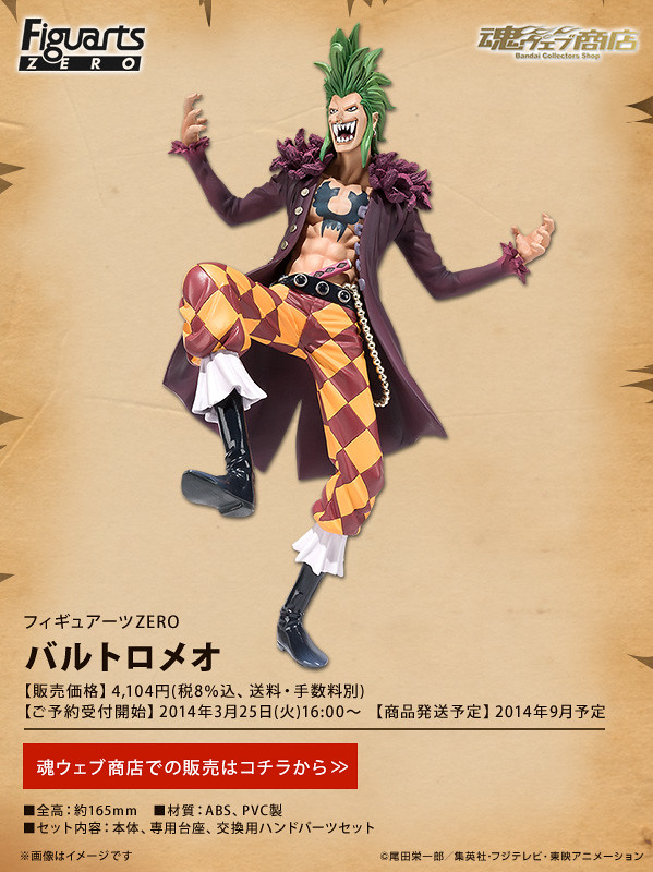 “德雷斯羅薩”篇登場,以強烈的個性而吸引目光的「食人鬼」巴托洛米奧(人喰いのバルトロメオ),在Figuarts ZERO 系列登場。