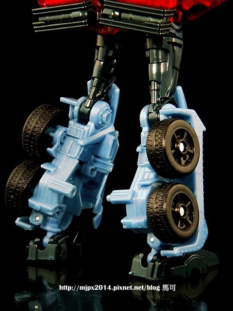 把玩上與RID首版並無任何區別,個人唯一可提出點建議的是既然已經以DARK ENERGON為主要方向,OP卻還是以AUTOBOTS設計實在有點怪,若是能以反派的設計出現,配上SHATTERED GLASS的配色定能造成熱潮,不過那SHATTERED GLASS配色一直都是BOTCON的限定產品,真要這樣設計出了還真有點是在貶低SHATTERED GLASS的身價呢 XD!