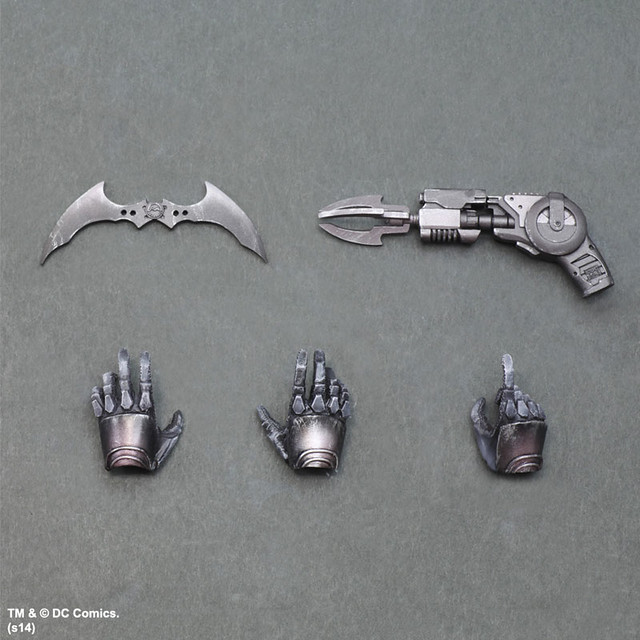 藉由大量的細節,這一款作品重現了電玩中蝙蝠俠英勇的姿態;胸口採用軟性材質製作,同時兼具了可動性與外型的流暢與美觀。另外,也在披風上設計了可動的部位,可展現出闇夜中飛行的造型,以及隨著各種姿態飄逸的模樣;頭雕採用了遊戲中兇狠的神情來呈現,並搭配經典的勾繩槍與飛鏢。