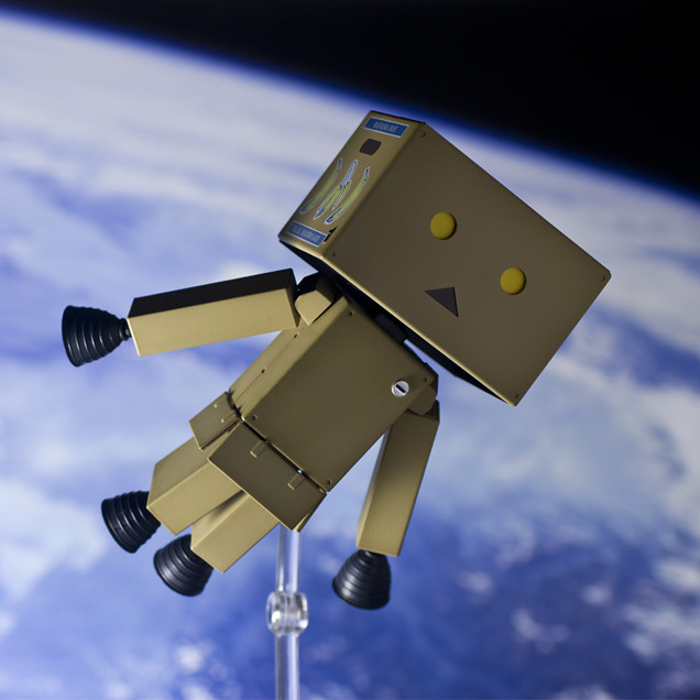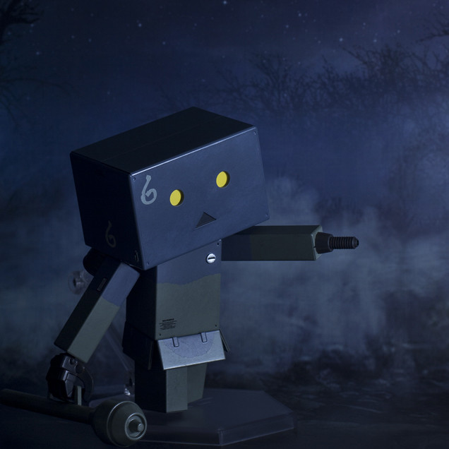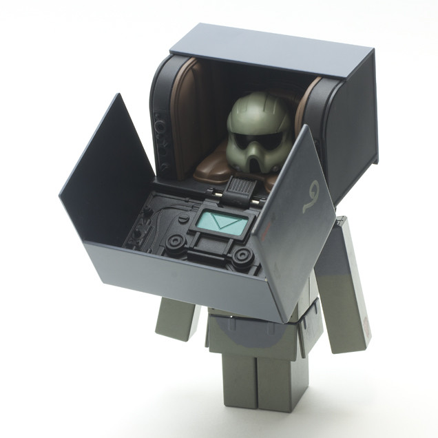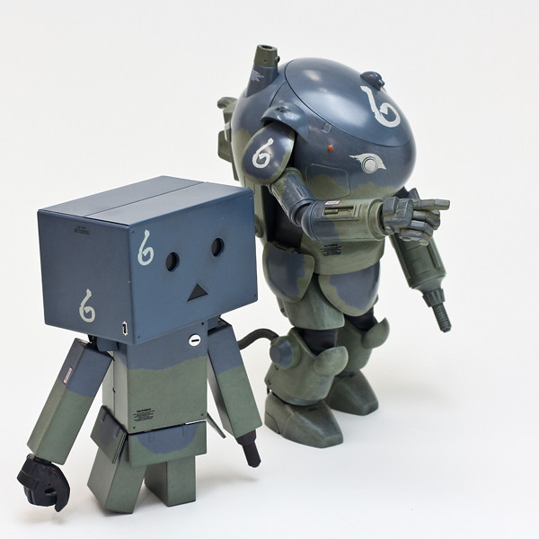 由“千值鍊”企畫、製作,將瓦楞紙箱打造的機器人「阿楞」,與橫山宏大師硬派科幻軍武系列「Ma.K」(Maschinen Krieger)合作誕生了史上最強的動力裝甲服『阿楞』。創意、巧妙地結合了兩款作品的元素,阿楞紙箱頭打開之後宛如「Ma.K」經典動力裝甲S.A.F.S.(SUPER ARMORED FIGHTING SUIT)的模樣相當地逗趣~ 並巧妙地利用了特殊構造,可切換眼睛的顏色,模擬發光的模樣。