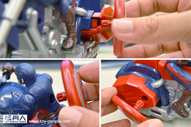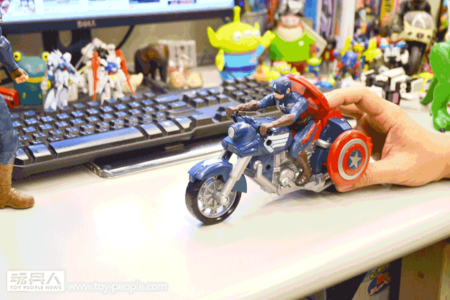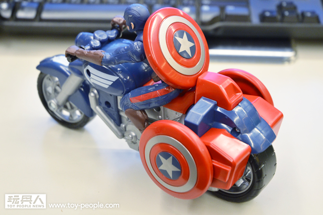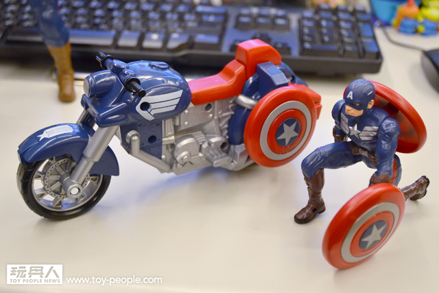 ▼ 美國隊長的人偶與重型機車也可分離,人偶還可作出戰鬥蹲姿,有種要用力投擲出去盾牌的感覺狠勁。