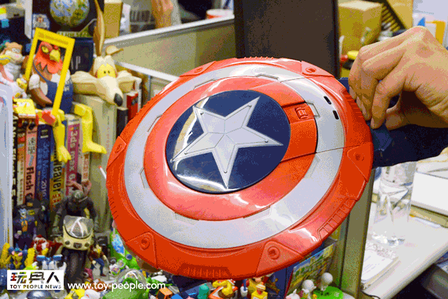 ▼ 小編迫不及待拆盒把玩,外觀十足現代科技風,拉開機關之後,美國隊長的盾牌儼然成為一個小型發射砲台!