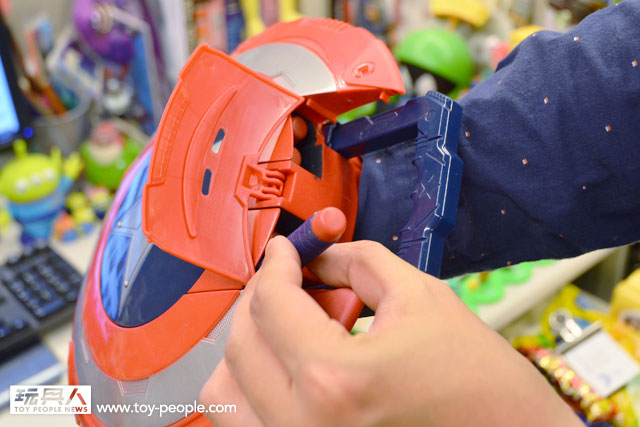 ▼ 看到包裝盒背面小捧油滿足的笑臉嗎?!這絕對是因為又可以發射了,是這組盾牌融合了孩之寶旗下NERF 系列的元素,讓盾牌可以帥氣的發射子彈。