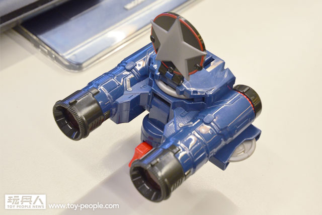 ▼ 將中間的瞄準鏡往下輕輕扳動,即可變化成為握把,上端星型圓徽可升起,讓小編教您如何一秒從望遠鏡變成槍型武器。