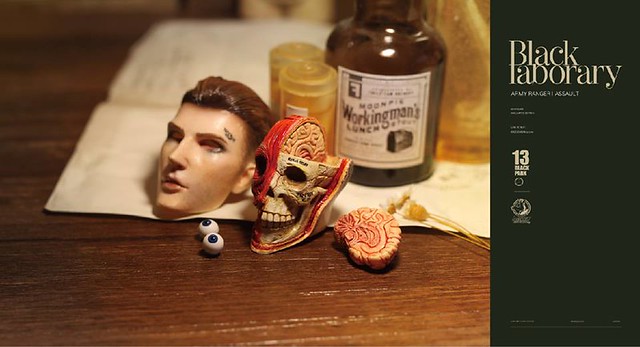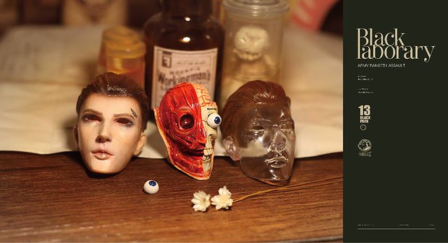 為充分表達BLACK LABORARY這系列對黑科學研究精髓,再現二戰黑科學在實驗員身上的改造技術與背景。我們將頭雕皮下組織,頭骨,肌肉,大腦,血管,眼球 ,全部精心刻畫設計。在融合藝術化的塗裝,頭雕的造型設計隱藏了裝置的開口。這也是BLACK13 PARK對人偶細節設計嚴謹考究的魅力。我們希望收藏家們可以從BLACK 13 PARK人偶身上,不斷發現驚喜與獵奇,一些曾經掩蓋在人偶皮膚下的內容,一樣可以通過設計表現的非常藝術驚豔。下一回即將開發動物解刨改造系列的內容,敬請期待!