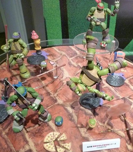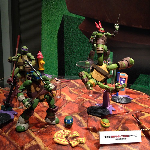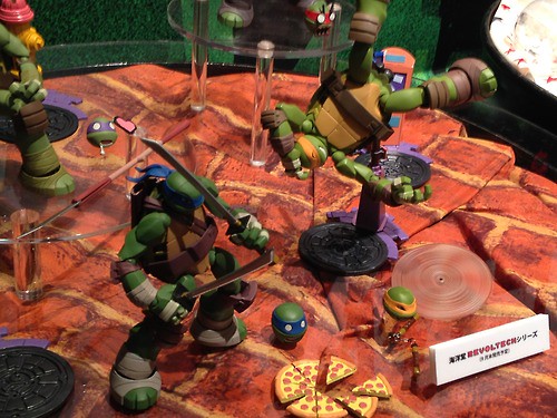 在近日東京表參道的忍者龜2K3日本首映派對上日海洋堂玩具公司曝光了預計在2014年推出REVOLTECH 輪轉可動系列的忍者龜,預計推出動畫版本的忍者龜Leonardo 李奧納多、Raphael 拉斐爾、Donatello 多納太羅和Michelangelo 米開朗基羅 等等四位主要忍者龜角色,全身多處輪轉可動關節,都持有專屬的武器,附有披薩等等配件,目前詳細發行日期尚未公開,有興趣的玩具人請持續鎖定玩具人網站後續報導。