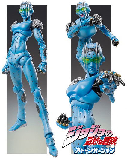 知名的JOJO冒險野郎可動玩具系列「超像可動」,在推出了第五部大反派「迪普羅」、「克里姆王」以及最終登場打倒強敵的「黃金體驗鎮魂曲」之後,終於堂堂邁入了第六部! 推出第六部「石之海」主角空条徐倫的替身能力「石之自由」!