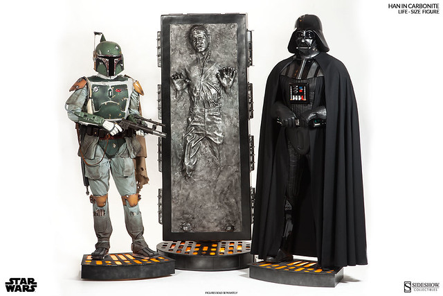 現在,美國知名的造型廠商Sideshow 推出了真正的1:1 碳化韓索羅雕像!以極高的技術刻畫出逼真寫實的造型,並且搭配了發光的機制,徹底完全重現電影中經典造型! 現在各位星際大戰的死忠粉絲,你們也有機會在家中擺上一個與賈霸相同的戰利品!