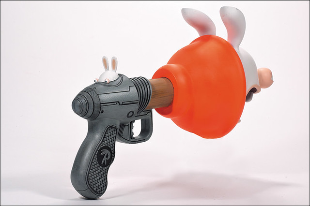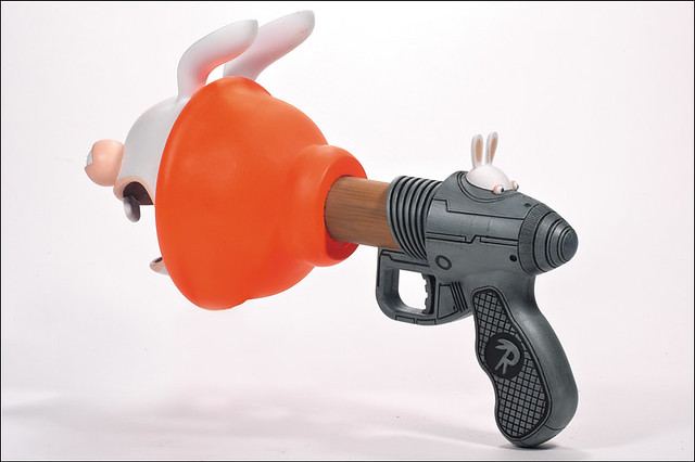 歐美知名的玩具廠商McFarlane Toys,今年度將推出一系列瘋狂又有趣的《瘋狂兔子全面侵略》系列玩具,繼先前我們曾介紹過的變臉公仔組合 之後,又要推出一個猛烈搞笑、激歡樂的《瘋狂兔子》音效槍!(RABBIDS PLUNGER BLASTER)