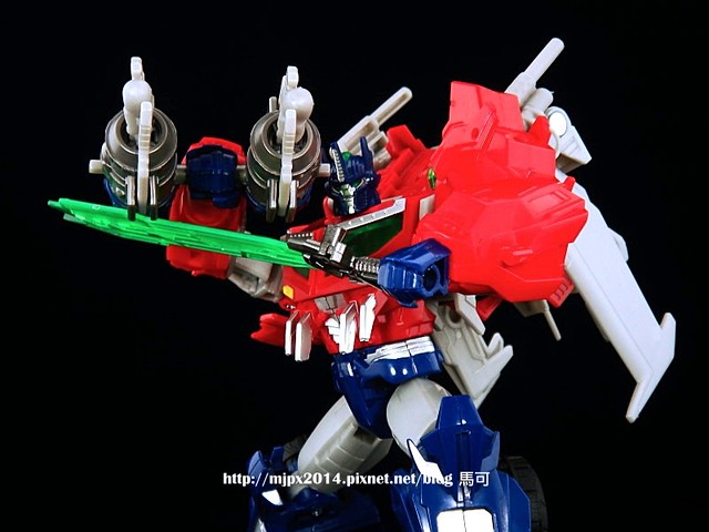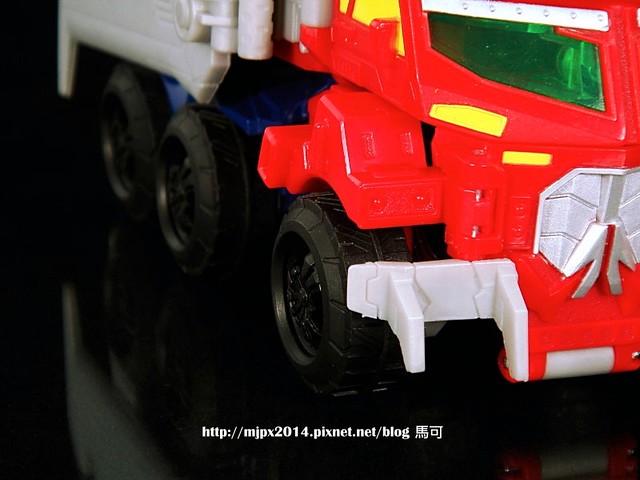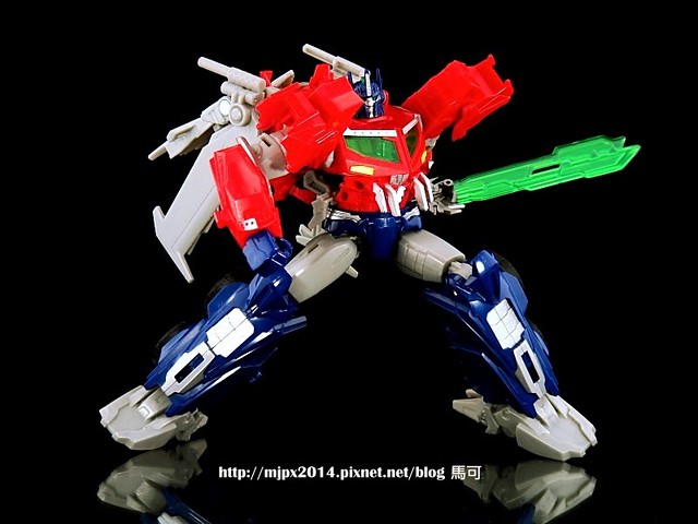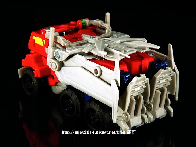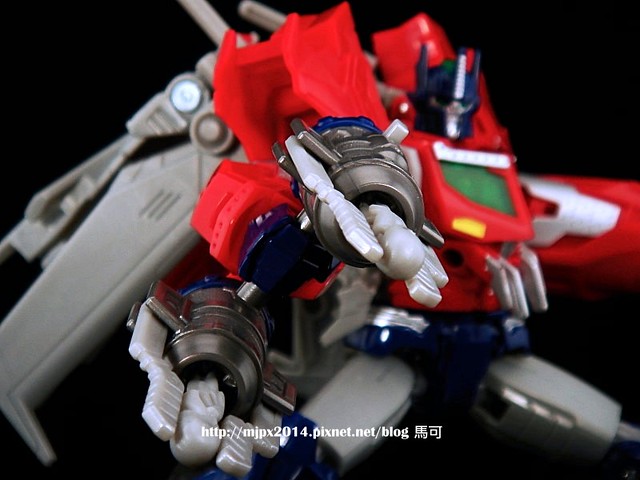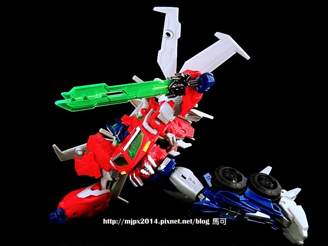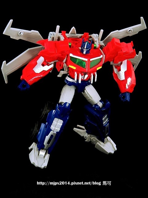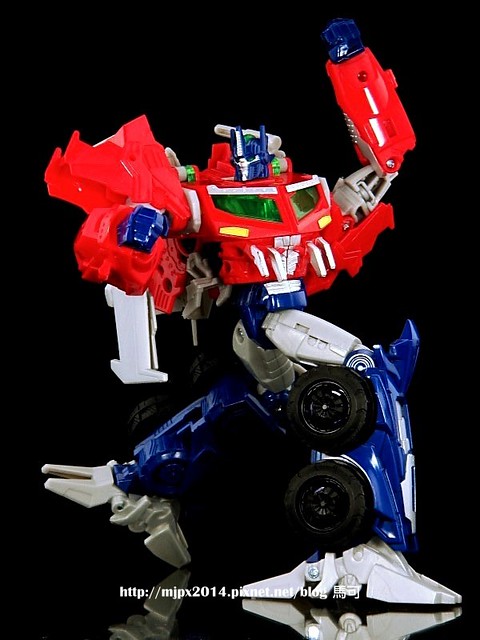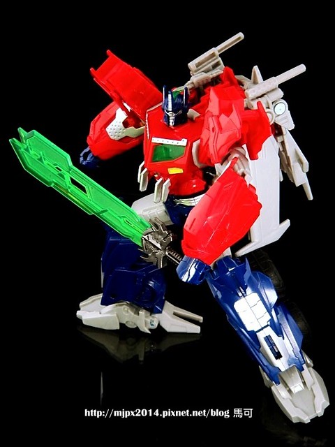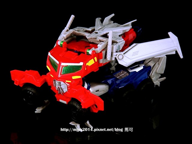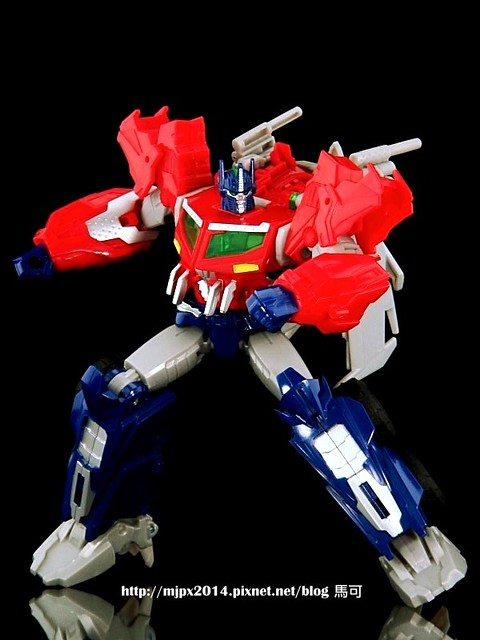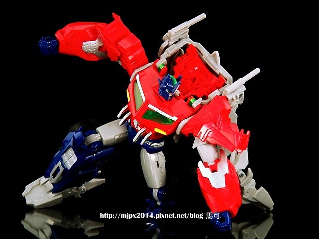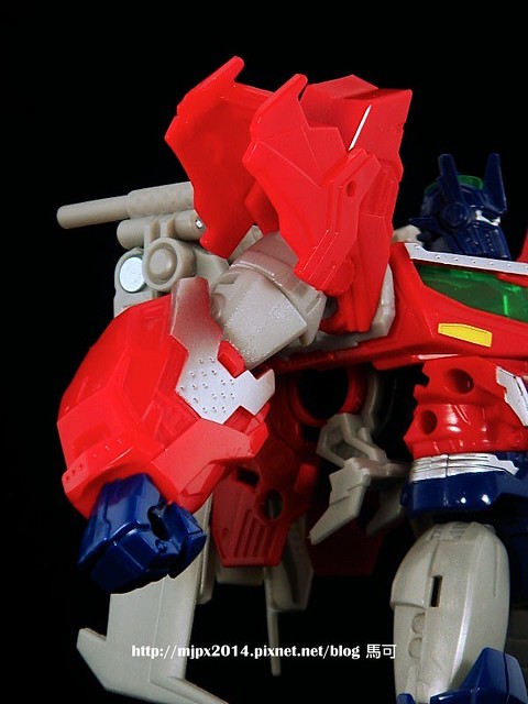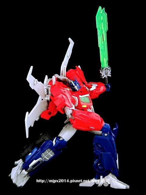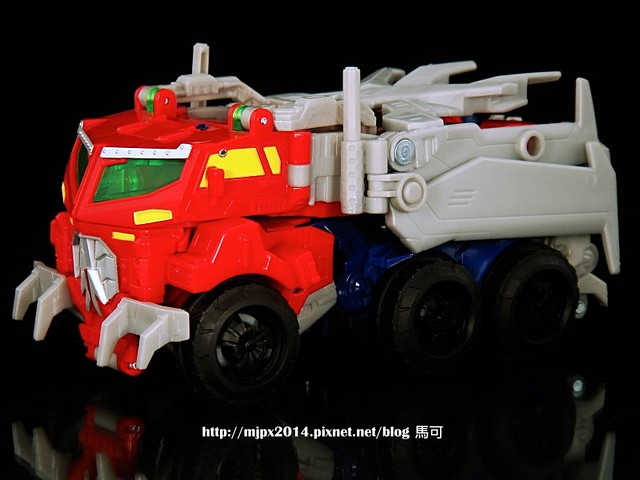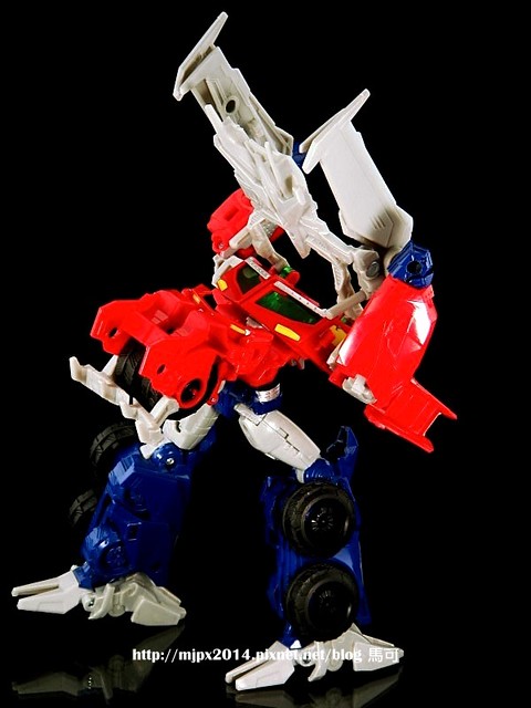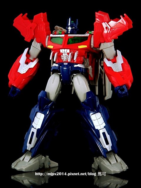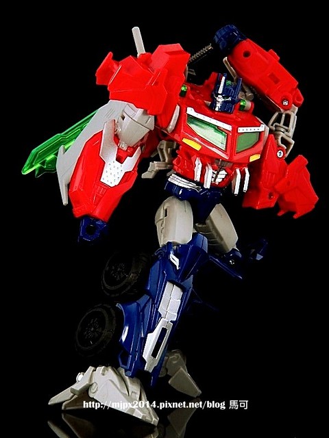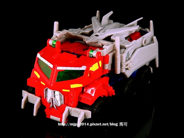 TRANSFORMERS PRIME(TFP)第二季的結尾,AUTOBOTS基地被DECEPTICONS摧毀,OPTIMUS PRIME(OP)因想毀掉OMEGA LOCK而來不及逃脫,重傷至極接近死亡,之後在SMOKESCREEN的幫助下重生,由原本的流線身形轉身為肌肉棒子,官方當然趁此機會再次推出全新的OP玩具設計,但此款設計消息剛放出時引起眾迷友們的反彈,加上前一玩具產線TRANSFORMERS ROBOTS IN DISGUISE(RID)系列讓迷友們太過失望,連我這種對OP有著極高死忠度的重度柯控都對這玩具抱持著質疑態度,約來越接近發貨時刻,看過更多官方消息後開始逐漸改觀期待趕快擁有。
