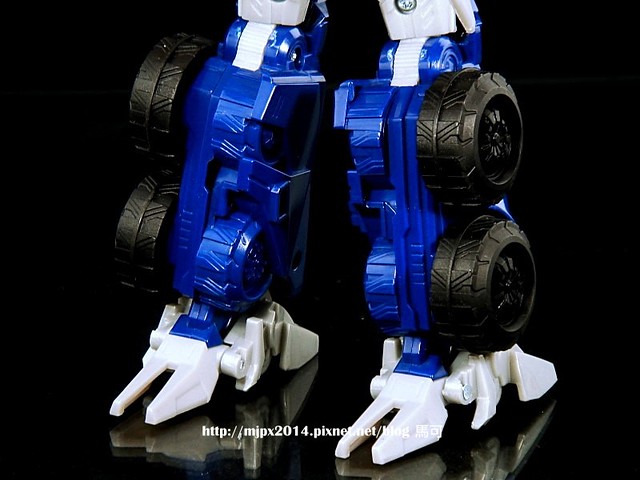 玩具到貨後發現之前的疑慮是多餘的,整體雖無100%還原動畫設計,但還是有一定的水準在。車型的設計乍看下與動畫中無太大差異,但到貨後的觀察會發現許多的缺失,像是車頂的漏洞、車窗非動畫的配色、車尾人形拳頭外露等...