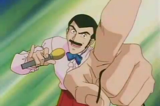 ▼ 《機動武鬥傳G鋼彈》中負責解說兼炒熱氣氛的主持人,可以說是整部片中最重要的角色。(咦)
