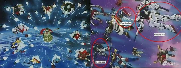 ▼ 最後各國鋼彈全員出動的經典場面,短短一兩秒的鏡頭中隱藏了不少神祕佳賓,讓人不吐槽也難。
