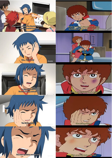 ▼ 誠被催眠之後,勾起童年回憶,居然是初代鋼彈中經典的“連我爸爸都沒打過我”台詞。話說,他到底過得是什麼樣的童年啊?XD