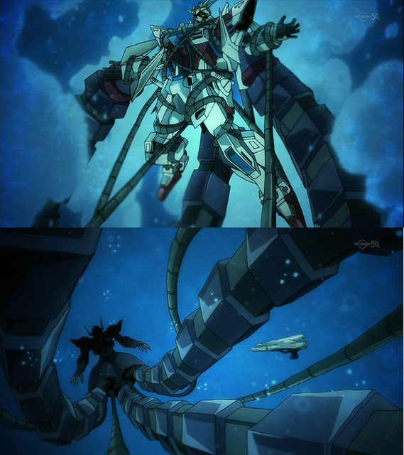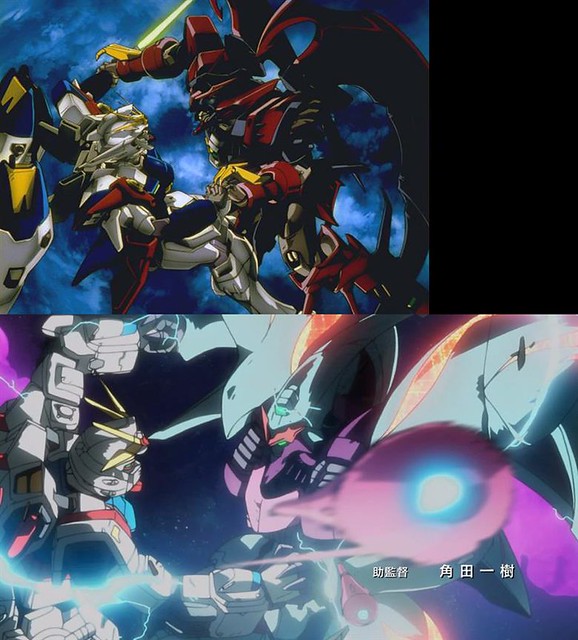 ▼ 星際製作攻擊鋼彈和花蝶丘貝雷的對戰,致敬的是《新機動戰記鋼彈 W》中的名場面。