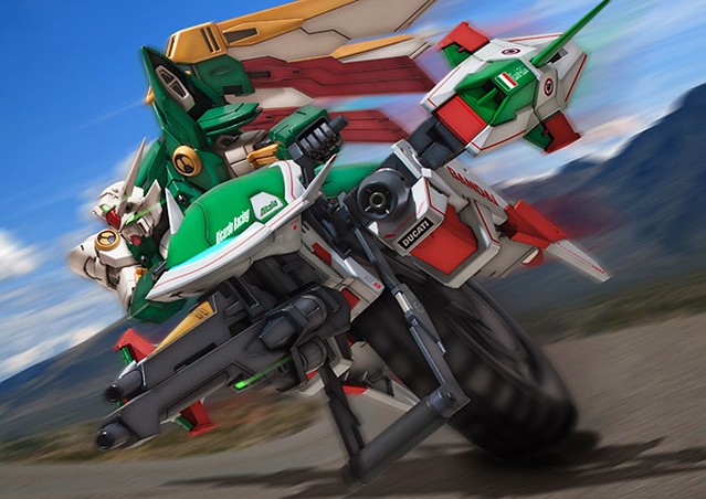 以飛翼鋼彈為原型的鳳凰飛異鋼彈,不對稱的設計,風格相當突出,搭配流星機動艇,更是帥到沒天良啊。