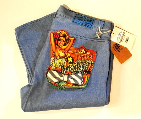 這是去年10月發表的「Made in Rock 'n' Roll」系列第二彈作品,最初僅在New York Trade Show 展出。這次採用了60 年代加州發源的「衝浪搖滾(California Surf Rock)」作為宣傳海報的主題設計,搭配夏天海灘的印象,採用了14oz 高級的衝浪藍Selvage Denim 與白色鈕釦、鉚釘營造出夏日氛圍。