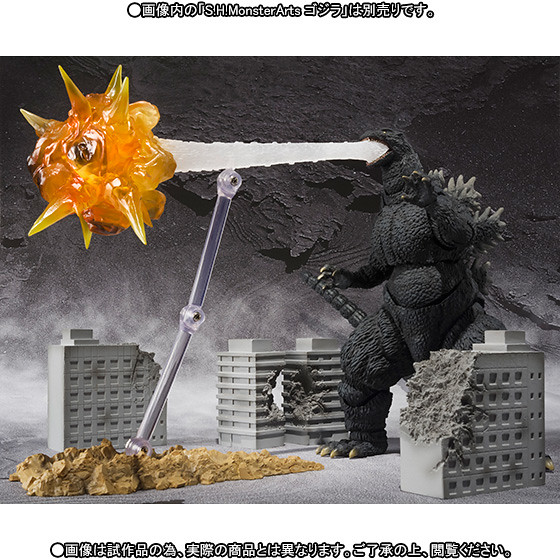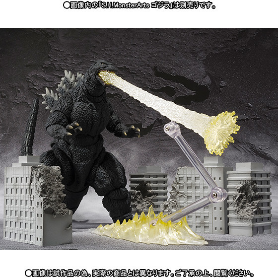 日Bandai萬代玩具公司的S.H.MonsterArts 特攝可動系列預計2014年9月發行ゴジラ対応エフェクト2 哥吉拉對應特效配件組2(暫時翻譯),內含有・支撐柱×2、熱線エフェクト×1、熱線爆発エフェクト×1、熱線エフェクトパーツ用台座×1、地割れエフェクト台座×1和ビルエフェクト2種×2等等豐富配件,可以使用在S.H.MonsterArts 特攝可動系列的哥吉拉身上,讓哥吉拉更具有威力使出不同熱線攻擊,將於魂web線上商店於2014年4月25日(日本時間)起開始接受訂購,售價約2,916元日幣,提供給喜歡S.H. MonsterArts 哥吉拉系列的玩具人參考。