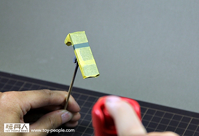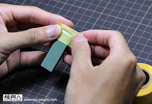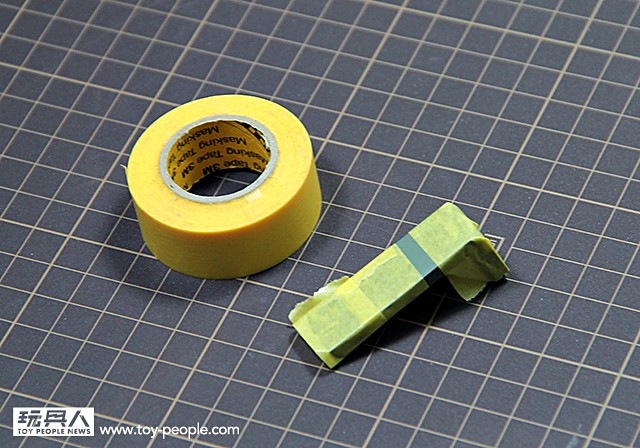 在此,也要跟各位玩具人說,遮蓋膠帶可是一分錢一分貨,千萬不要誤買了紙膠帶當作遮蓋膠帶用。它那不殘膠的特質,在噴漆作業中是非常重要的。因為模型在經過我們努力的研磨之後,已經達到非常平整光滑的狀態,一旦殘膠,不僅讓之前的努力白費,同時也會影響漆料的發色。