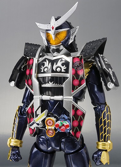 《假面騎士 鎧武》是平成假面騎士系列誕生15週年紀念作,同時也是原作者石之森章太郎老師誕生75週年,這次S.H. Figuarts 可動系列將2014年9月發行S.H.Figuarts 仮面ライダー鎧武 ジンバーレモンアームズ,假面騎士 鎧武 陣羽檸檬鎧甲(暫時翻譯),利用能量定鎖種子力量作出強化(高速的運動能力為主)的形態,配合弩弓武器Sonic Arrow作近戰及遠距離攻擊,全身以銀色、黑色、桃紅色和藍色配色為主,附有四款能量鎖頭,分別是檸檬能量、櫻桃能量、蜜桃能量和哈密瓜能量等等配件,尺寸高約14公分,售價約4,860元日幣,提供給喜歡假面騎士 鎧武系列的玩具人參考。