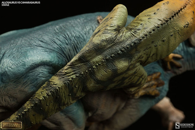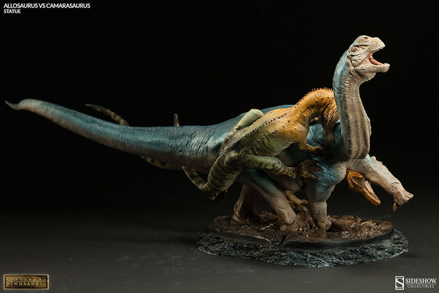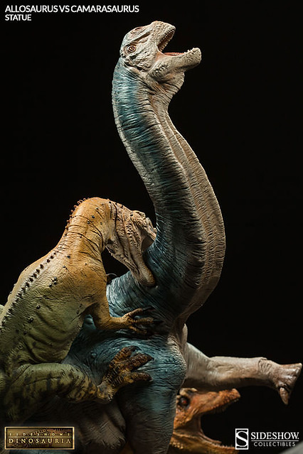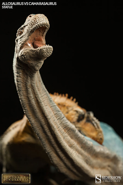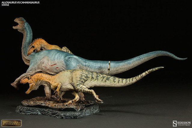美國知名的造型廠商Sideshow預計明年2015年1月推出Allosaurus vs Camarasaurus 異特龍與圓頂龍 恐龍收藏雕像,Allosaurus 異特龍又稱為異龍,是獸腳亞目肉食龍下目恐龍的一屬,異特龍是掠食性的恐龍有大型的二足可以行走,平均身長為8.5公尺,最長可達12到13公尺;Camarasaurus 圓頂龍是蜥腳下目恐龍的一屬,是屬於四足行走的草食性恐龍,牠們是北美洲最常見的大型蜥腳類恐龍,但成年體型只有約18米長及體重18公噸,在一次發現於猶他州恐龍國家保護區的圓頂龍骨盆,曾發現有異特龍的齒痕。