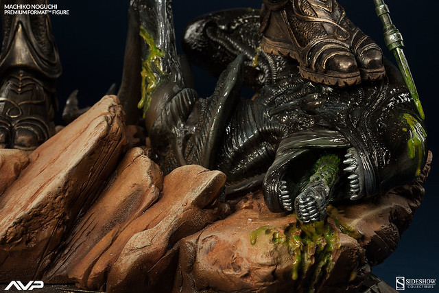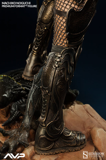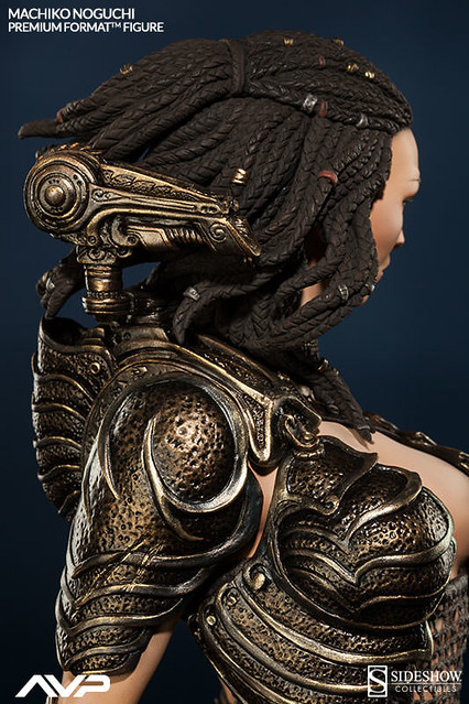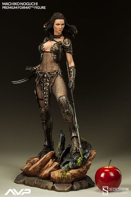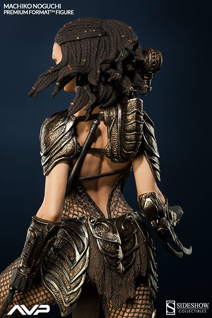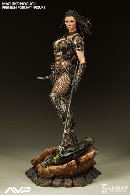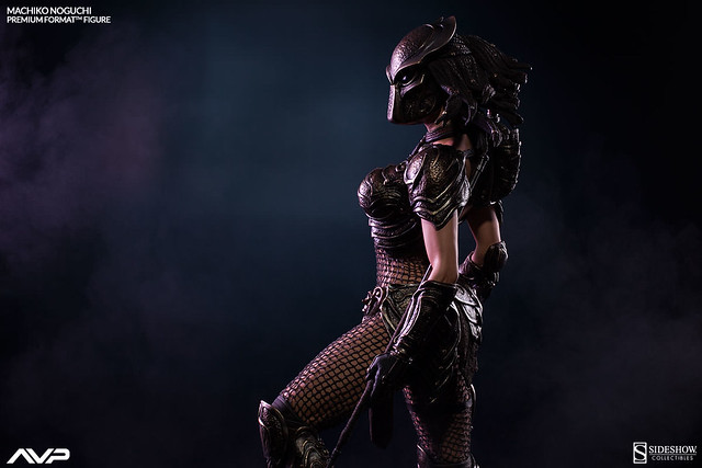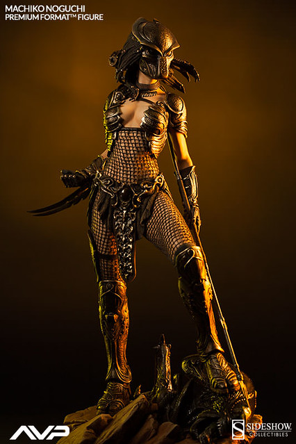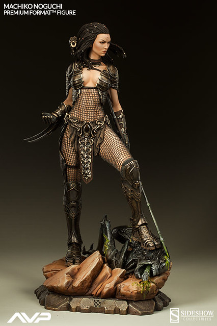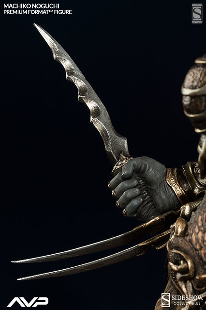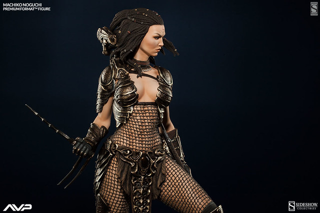 在異形大戰終極戰士(AVP)系列作中曾經登場一位傳奇角色—Machiko Noguchi。雖然她是人類女性,但是為了恢復家族名聲,她努力修行武術,後來在異星戰役中與終極戰士建立起深刻友情,甚至被接納成為終極戰士一員,曾經擊殺異形王后,被賜與終極戰士名號「 Da'dtou-di(英文意思是small knife,小刀之意) 」。近日SIDESHOW將這位傳奇角色立體化,細緻再現了Machiko Noguchi的終極戰士武裝,獨特的終極戰士科技面罩可以卸下,露出鬼神般英勇的真面目,終極戰士的髮型與額頭上的戰士紋章是一大特色。另外SIDESHOW限定版附贈可替換手腕,可切換成手持儀仗刀(Ceremonial Knife)的姿態。地台不意外有顆慘死的異形頭顱被左腳踐踏,看起來霸氣十足!本作品高約54.6公分,美金售價439.99元,預計2015年4月出貨,提供給大家參考唷!