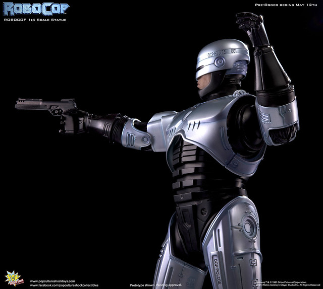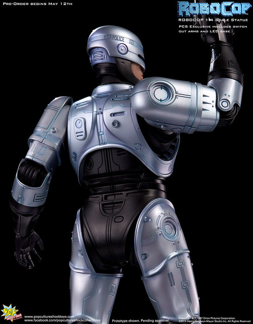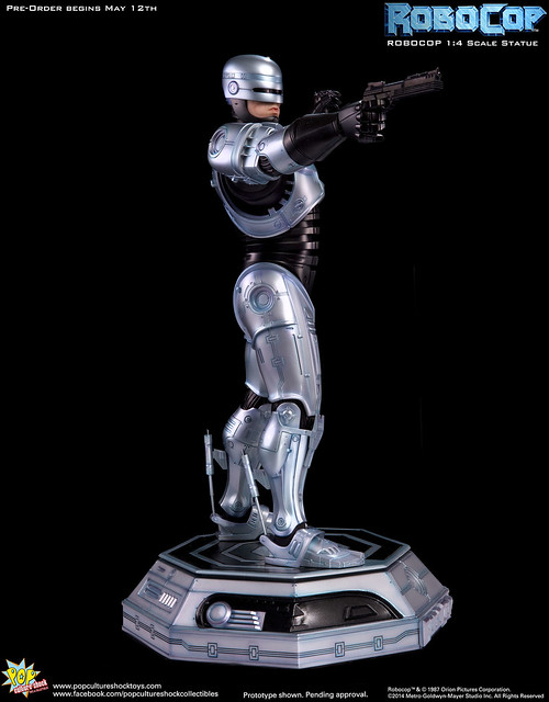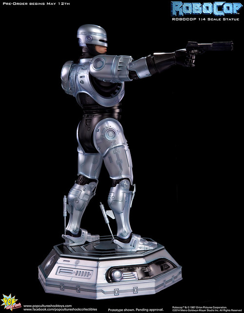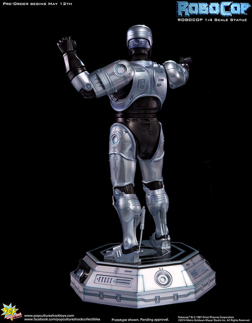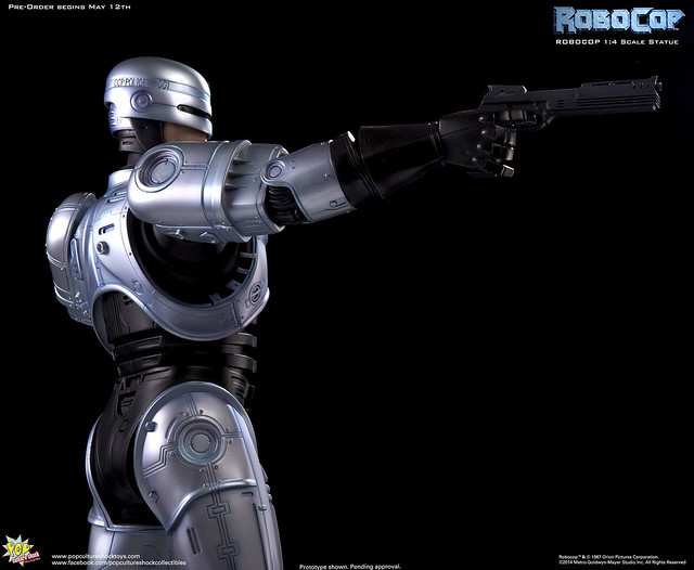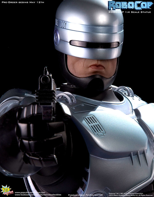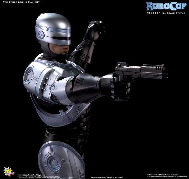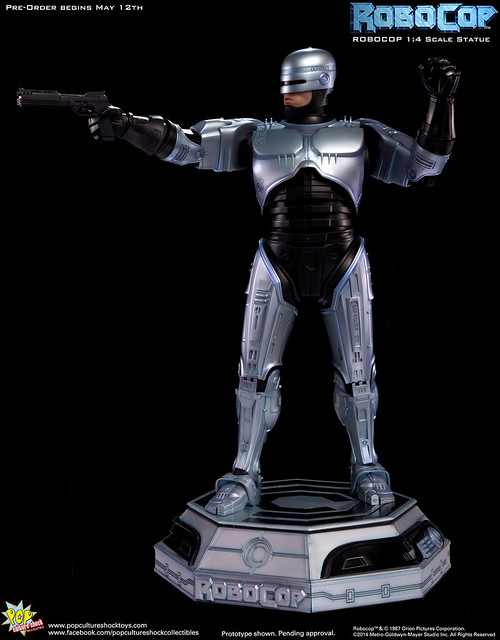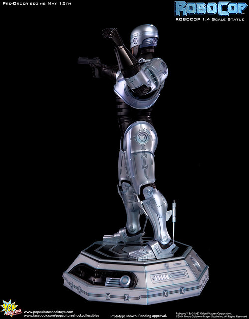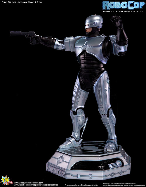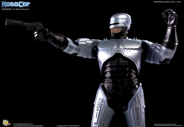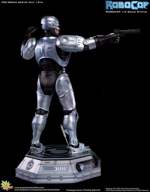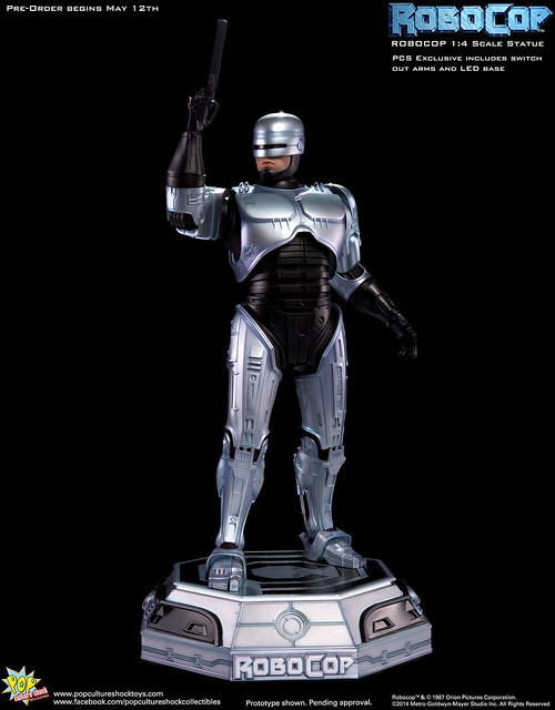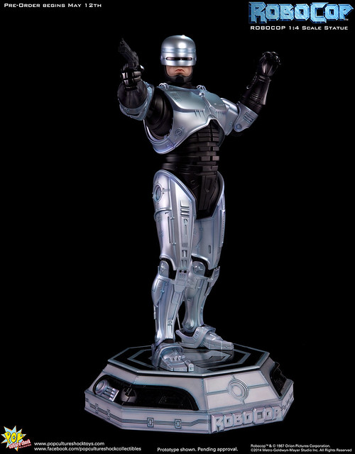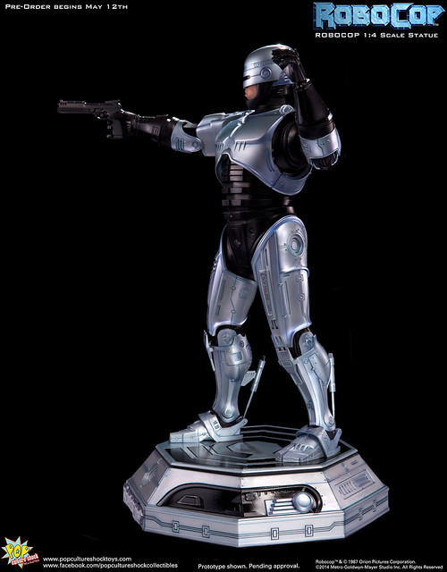 Pop Culture Shock新作機器戰警1/4比例雕像預購展開!相較HOT TOYS與ENTERBAY的版本,小編認為最值得比較的是金屬材質的表現,畢竟這是本角色最大的特色之一。本作品的金屬身軀可以看到有作些微的藍色塗裝,讓機械結構看起來更有科技感。另外地台也頗細緻。本作品分為限定版與一般版兩種,限定版售價449美元,限量350尊,比一般版多了彎曲的右臂可供替換以即可發光地台。有興趣的朋友不妨跟HOT TOYS與ENTERBAY的版本比較後再入手喔!預計2015年第2季推出,提供大家參考!