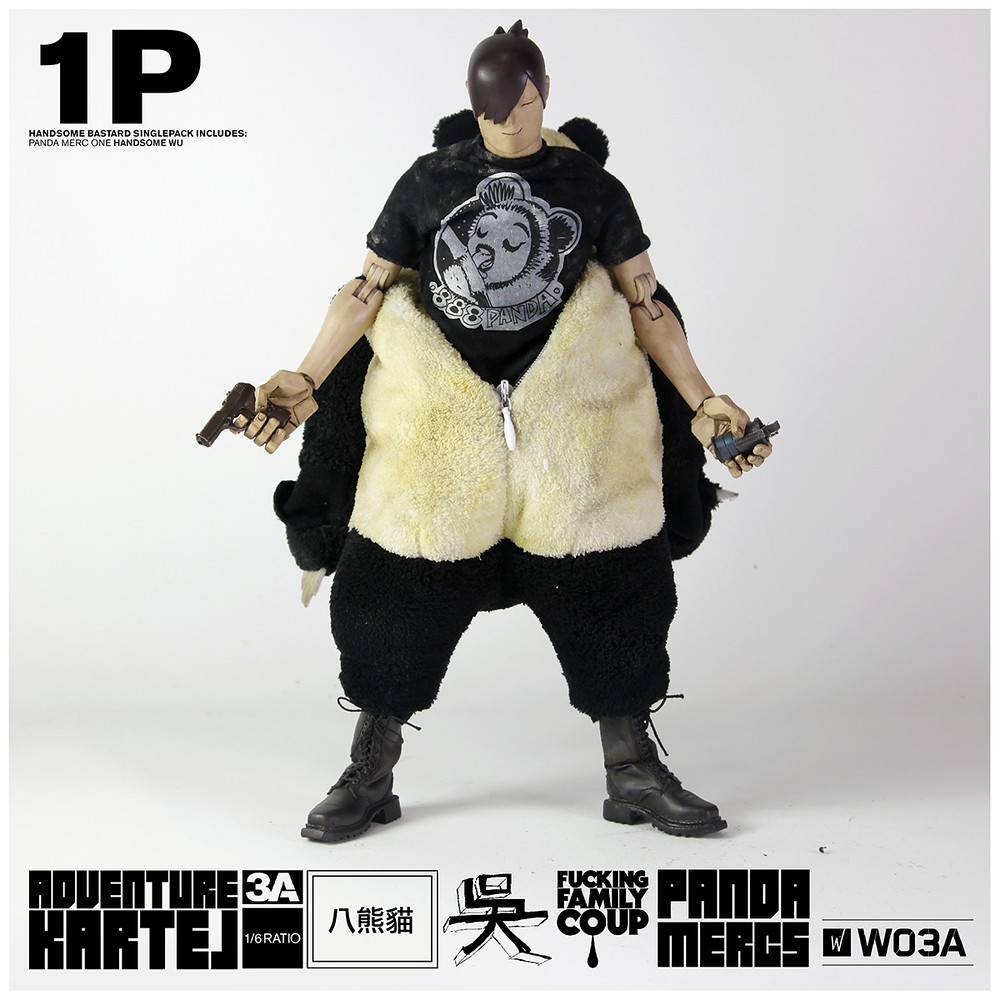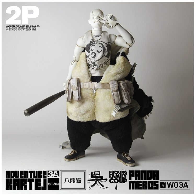 香港玩具大廠threeA 公司即將於明天早上09:00,準時於bambalandstore販售最新Adventure Kartel 的全新角色:「帥帥der 吳先生」(HANDSOME WU)。除了有販售單支包裝的「帥帥der 吳先生」之外,threeA 公司更加碼推出雙人熊貓組合包(888 THREE FAT TARTS 2-Pack),裡面除了有帥帥der 吳先生,還有另一個角色F-LEGION 6023,看起來這兩個角色應該是屬於FUCKING FAMILY GROUP 的一員。