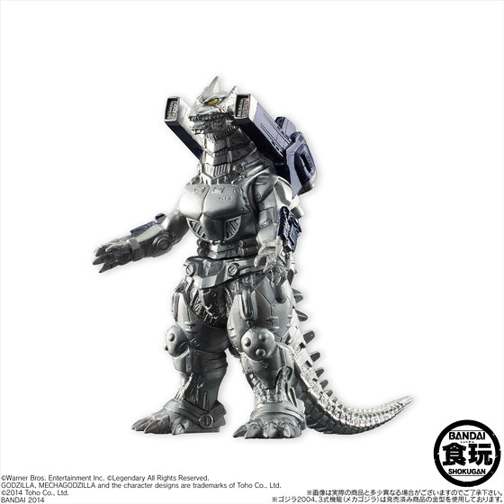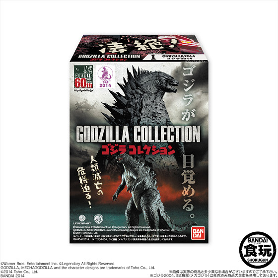 日Bandai萬代玩具公司預計2014年7月推出ゴジラコレクション 哥吉拉篇章 食玩(暫時翻譯),2014年夏季重新拍攝的『GODZILLA』造成話題,這次將收錄「ゴジラ(2014)」哥吉拉(2014)版本、2004年的『ゴジラ FINAL WARS』當中哥吉拉(2004)的版本和2002年的『ゴジラ×メカゴジラ』中登場的「メカゴジラ(2002)」メカゴジラ(2002)的版本等等三種類,每盒都付一個ガム(ソーダ味)小糖果,單盒售價約380元日幣,對哥吉拉系列有興趣的玩具人可以參考一下。