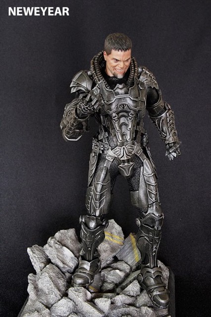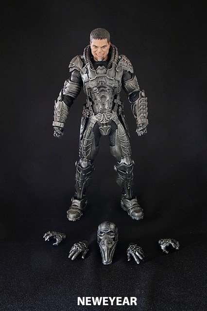 一如Hot Toys平常包裝,一看就知道代表此玩偶角色的明顯特色,包裝外觀圖示為鋼鐵英雄電影,薩德將軍遠從家鄉帶來毀滅地球的機器,正在進行改造地球的毀滅畫面。(個人認為很像Philippe Starck設計的榨汁機)Hot Toys出的三位角色都有明顯的包裝設計區別,喬艾爾-氪星(顏色:土黃色)、凱艾爾-北極(顏色:藍色)、薩德將軍-都市(顏色-深灰),在收藏Hot Toys的玩具,包裝都有很明顯的設計,往往大家都不自覺的就掏出錢,購買高級塑料了。