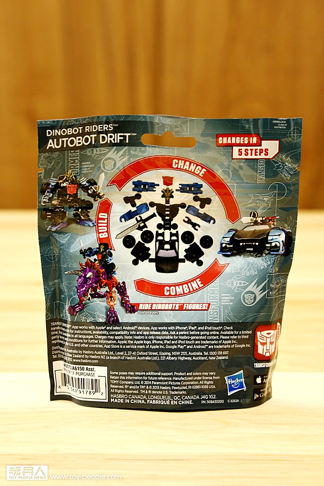▼ 首先是DINOBOT RIDERS:基本組,這是組合機器人系列(CONSTRUCT-BOTS)最小的基本款式,小編在此介紹的是第4集登場的新角色“甩尾”(Drift)。(他的商品好多... 看來將會在第4集中有相當多的戲份?)